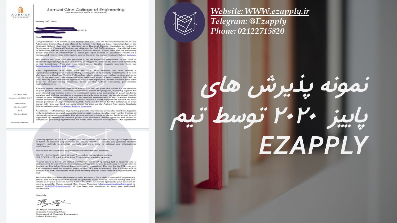 اخذ پذیرش در دانشگاه «Missouri Columbia» و «Auburn» آمریکا در مقطع دکترا