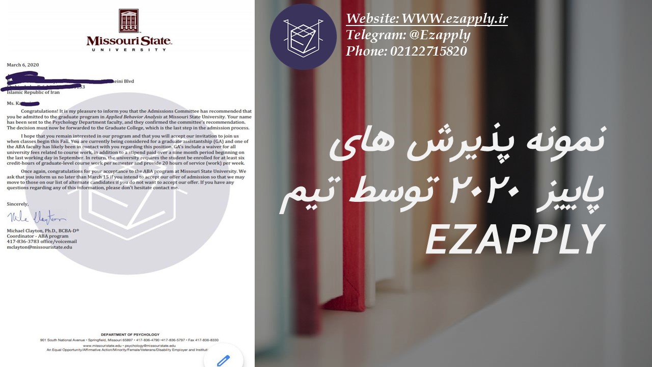 اخذ پذیرش در دانشگاه «Missouri State» آمریکا در مقطع کارشناسی ارشد رشته روانشناسی