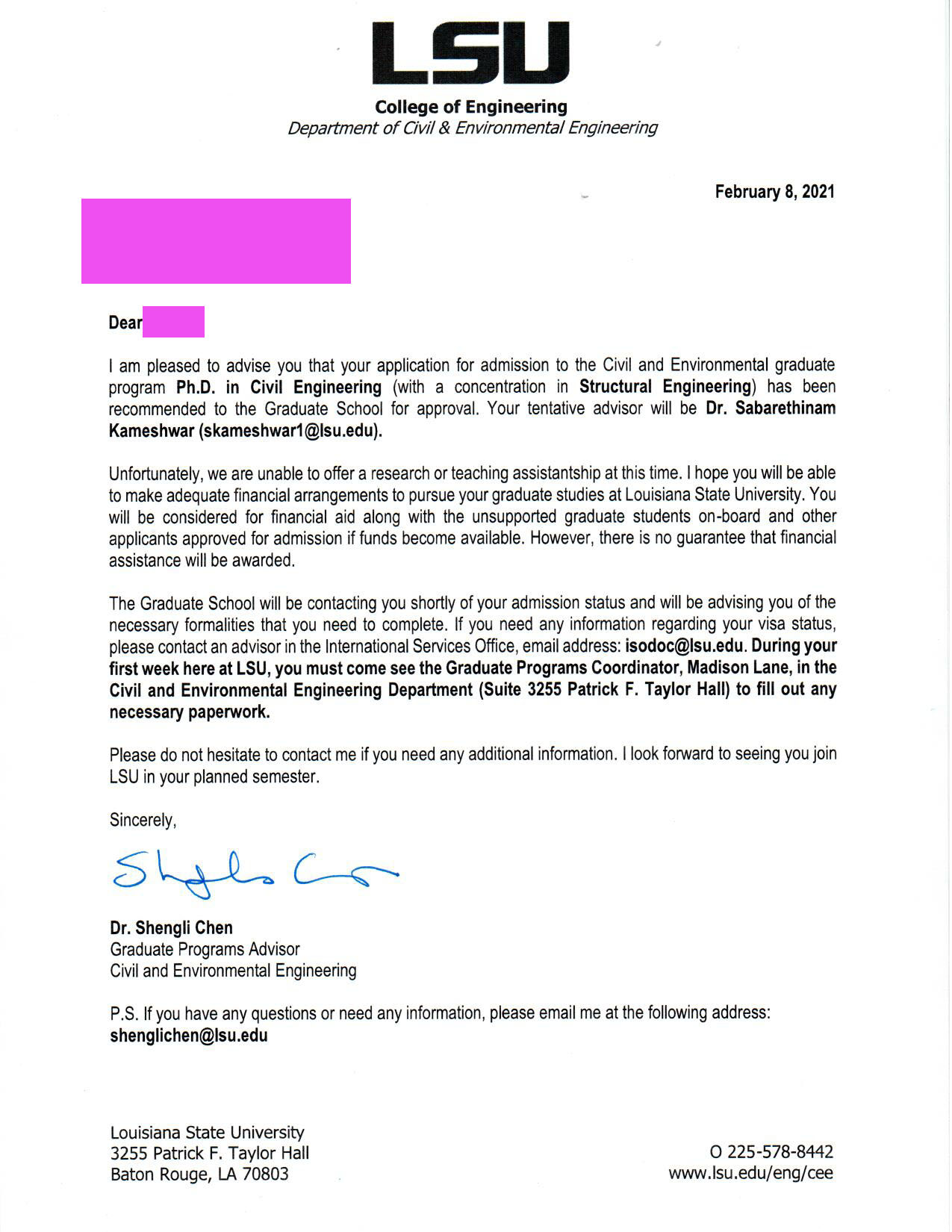 - اخذ پذیرش توسط تیم «ایزی اپلای» در مقطع کارشناسی ارشد در رشته «مهندسی عمران» از دانشگاه «Louisiana State» در آمریکا برای ترم پاییز 2021