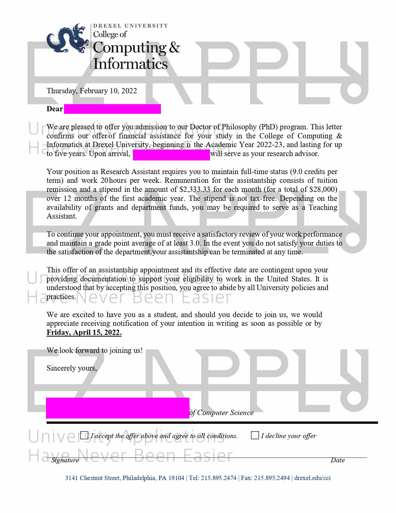اخذ پذیرش فول فاند توسط تیم «ایزی اپلای» در مقطع دکتری در رشته «Computing & Informatics» از دانشگاه «Drexel University»در آمریکا برای پاییز 2022