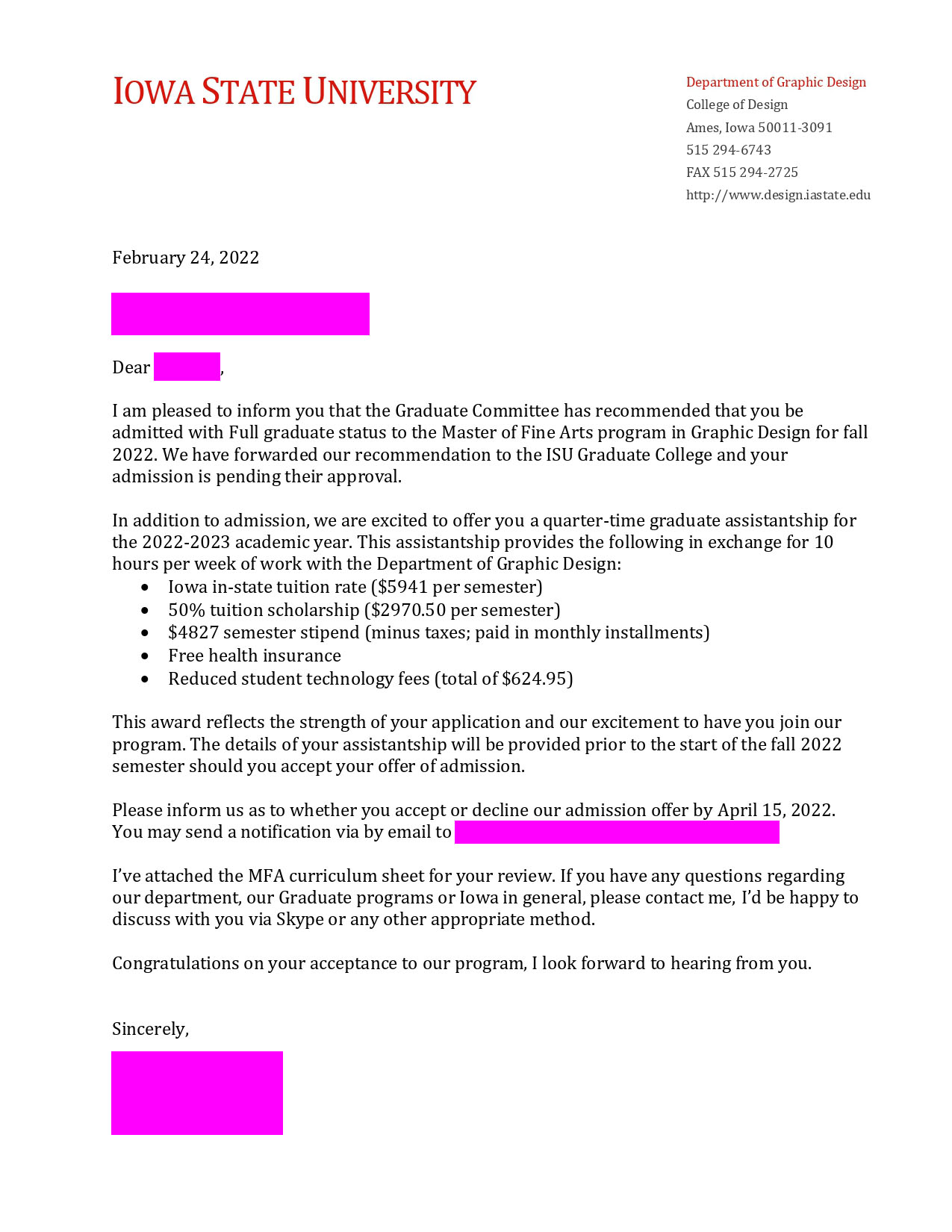 اخذ پذیرش توسط تیم «ایزی اپلای» در مقطع کارشناسی ارشد «گرافیک» از دانشگاه «Iowa State University» آمریکا برای ترم پاییز 2022