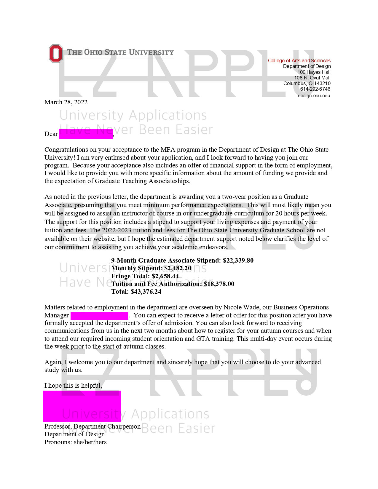 اخذ پذیرش فول فاند توسط تیم «ایزی اپلای» در مقطع کارشناسی ارشد «تحقیق و توسعه طراحی» از دانشگاه «Ohio State University» آمریکا برای ترم پاییز 2022