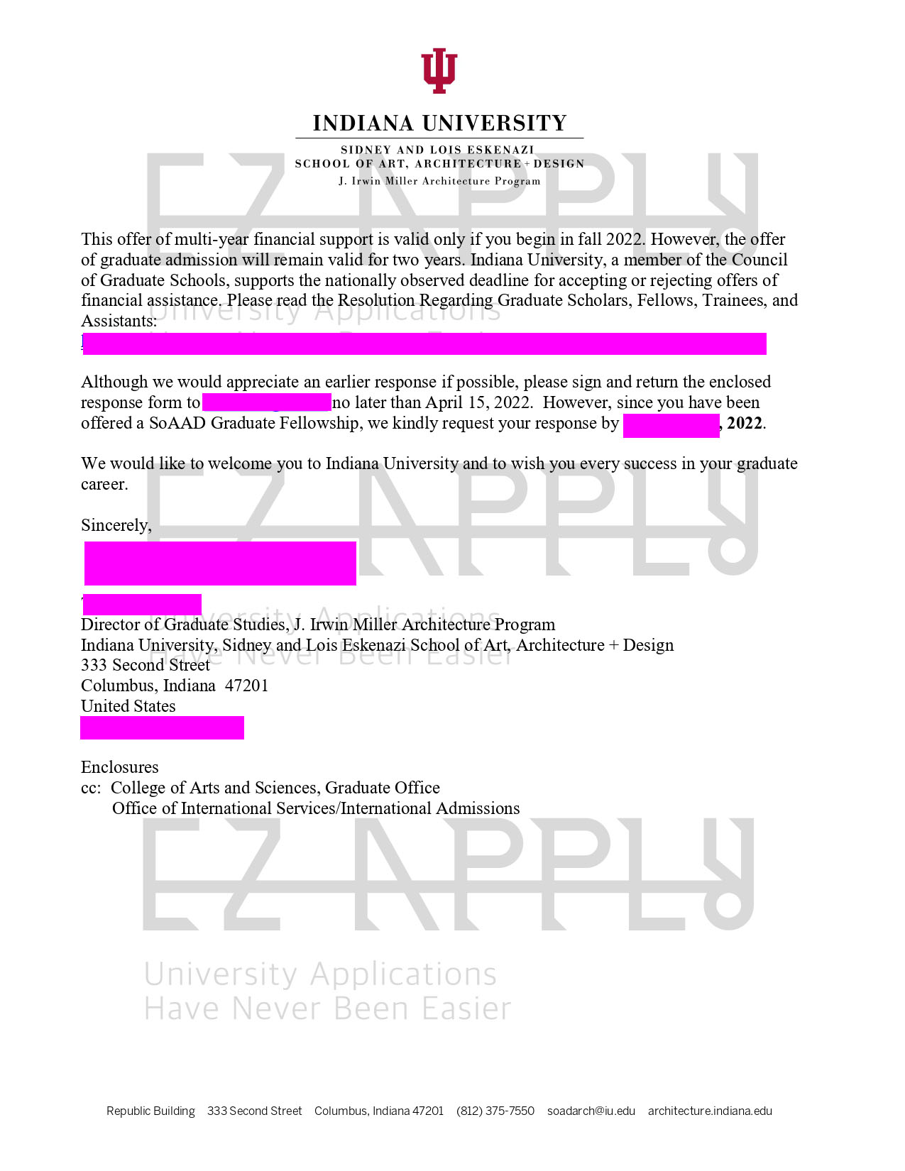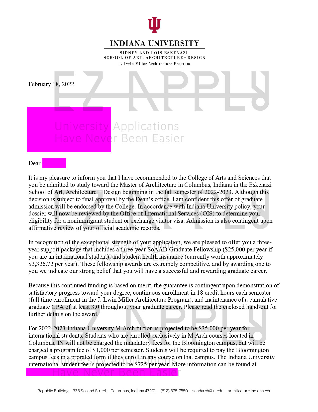 اخذ پذیرش توسط تیم «ایزی اپلای» در مقطع کارشناسی ارشد «مهندسی معماری» از دانشگاه «Indiana University» آمریکا برای ترم پاییز 2022
