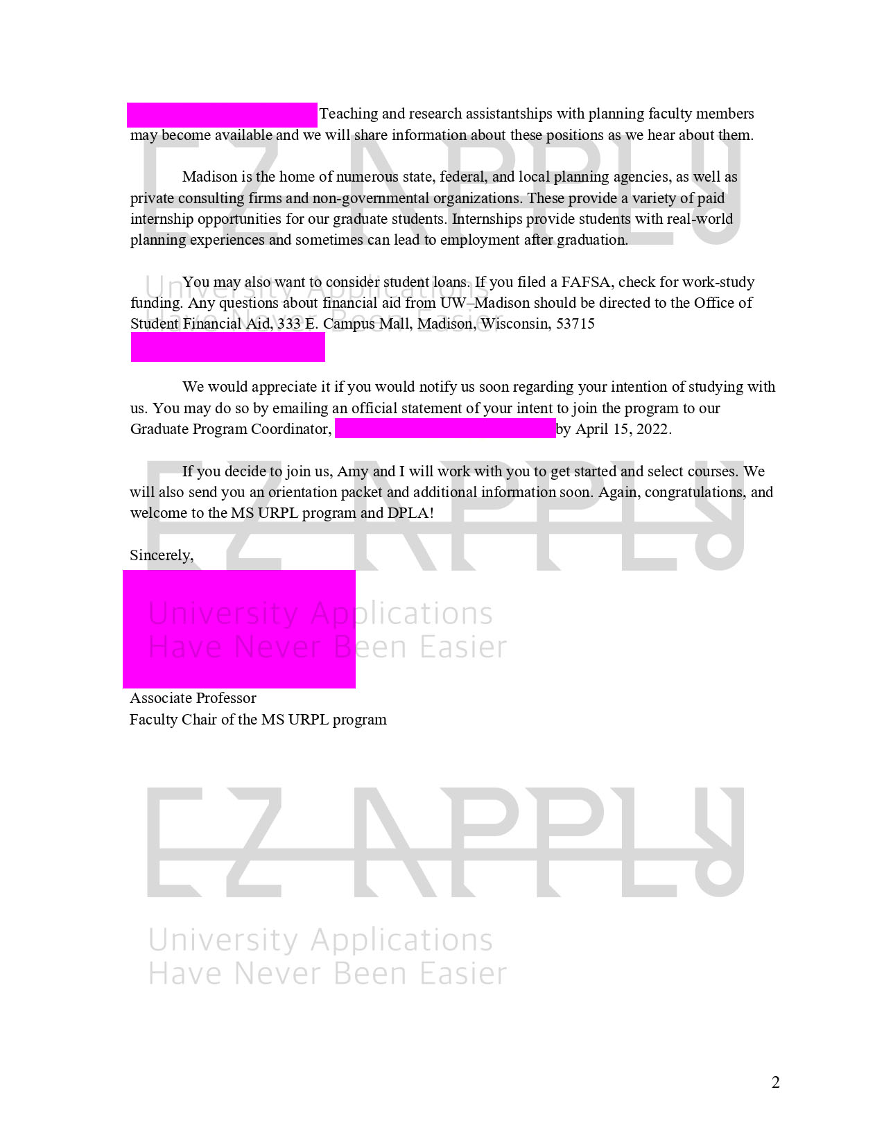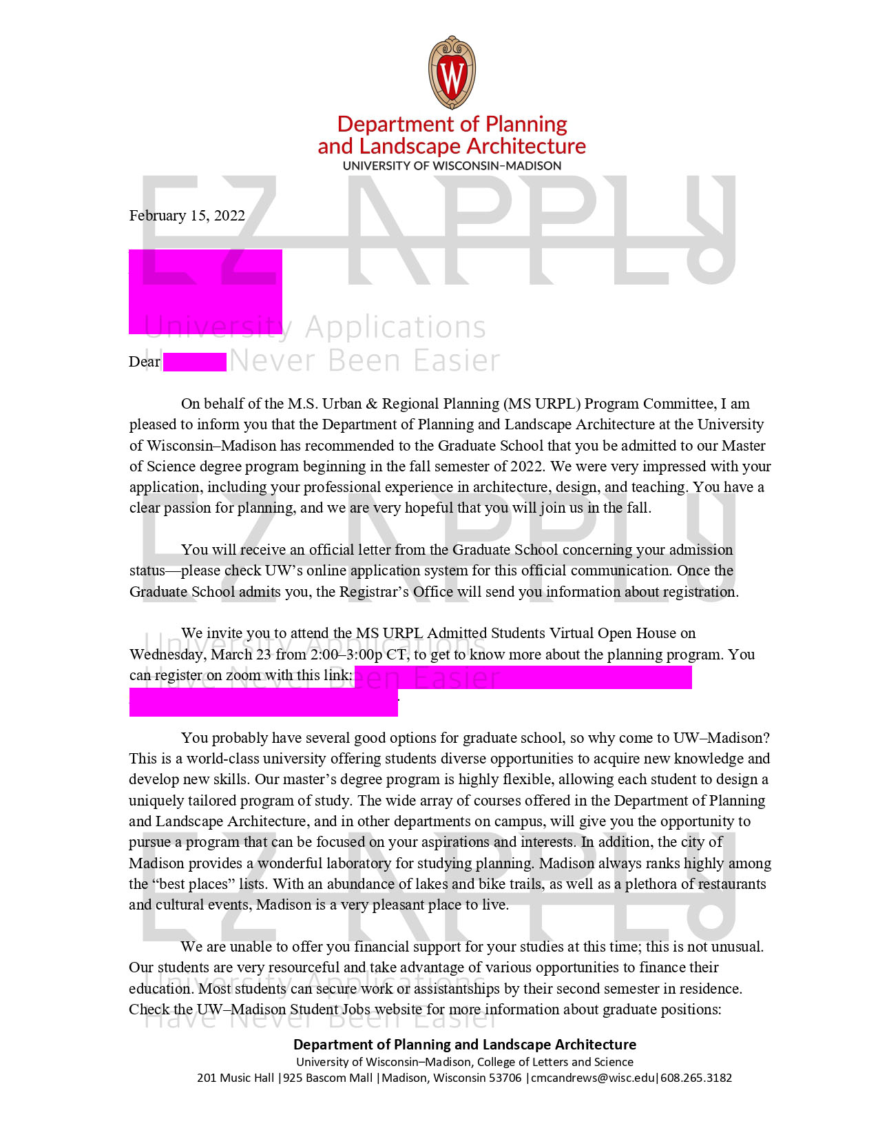 اخذ پذیرش توسط تیم «ایزی اپلای» در مقطع کارشناسی ارشد «برنامه ریزی شهری و منطقه ای» از دانشگاه «University of Wisconsin Madison» آمریکا برای ترم پاییز 2022