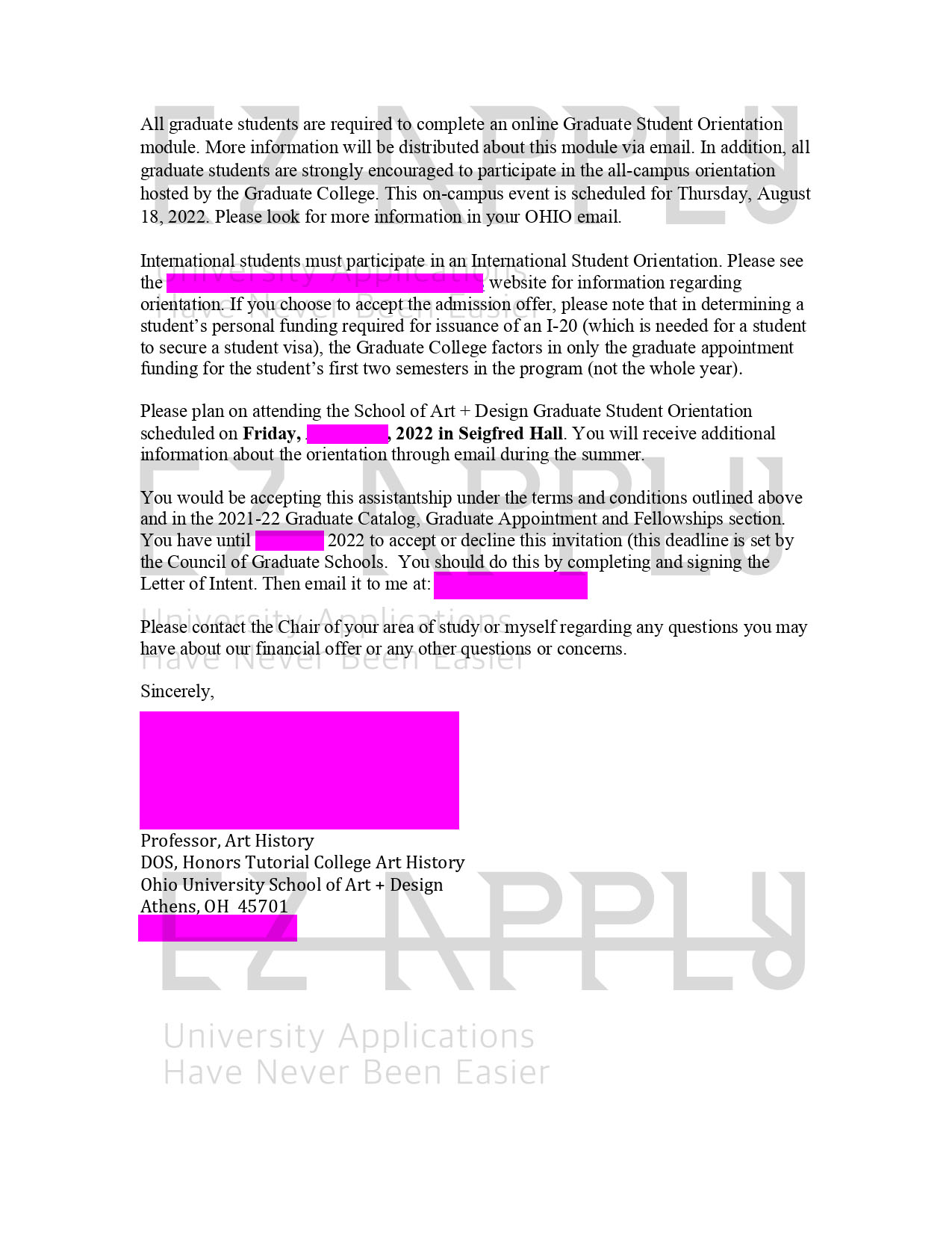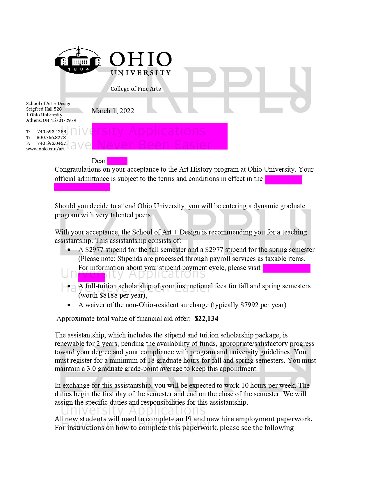 اخذ پذیرش توسط تیم «ایزی اپلای» در مقطع کارشناسی ارشد «تاریخ هنر» از دانشگاه «University of Ohio» آمریکا برای ترم پاییز 2022