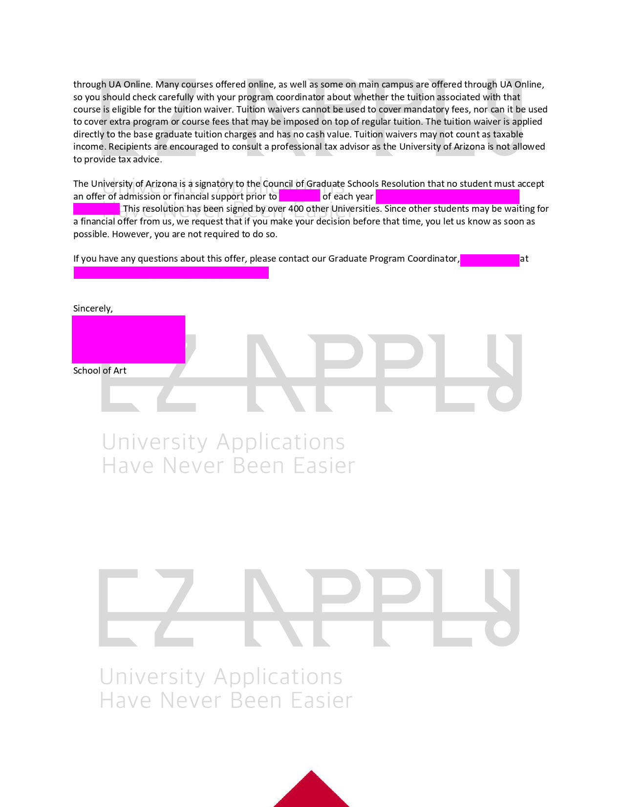 اخذ پذیرش توسط تیم «ایزی اپلای» در مقطع کارشناسی ارشد « تاریخ هنر» از دانشگاه «University of Arizona » آمریکا برای پاییز ۲۰۲۲