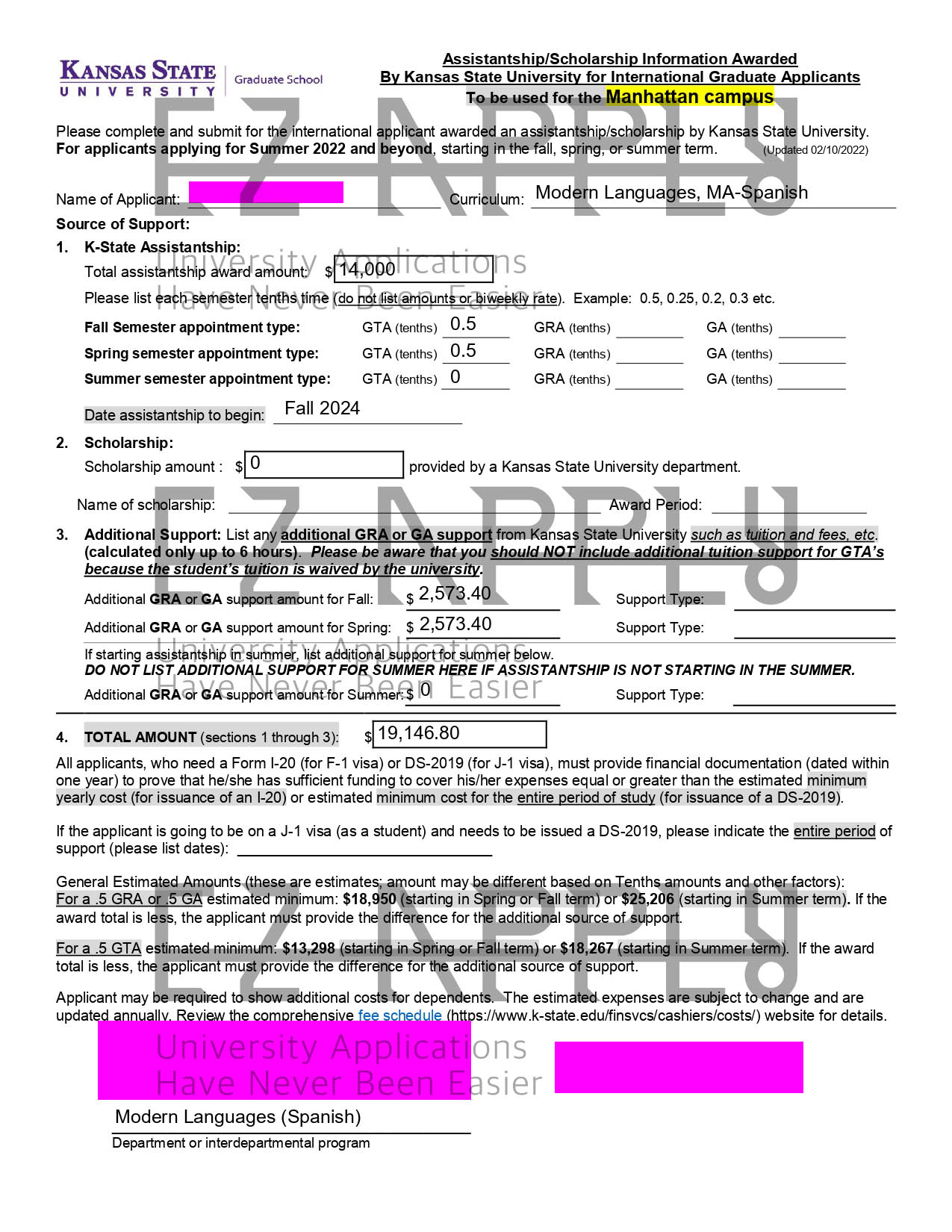 ادمیشن فول فاند اخذ شده در مقطع «کارشناسی ارشد» در رشته «Spanish» از Kansas State University در آمریکا برای پاییز 2024