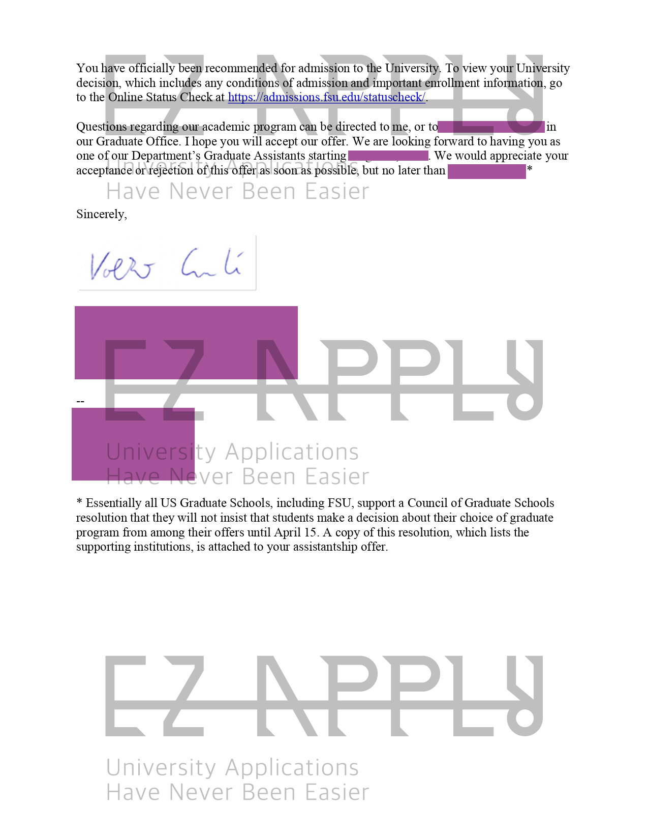 - پذیرش اخذ شده توسط تیم ایزی اپلای در مقطع «دکتری» در رشته «فیزیک» از «Florida State University» در آمریکا برای پاییز 2023