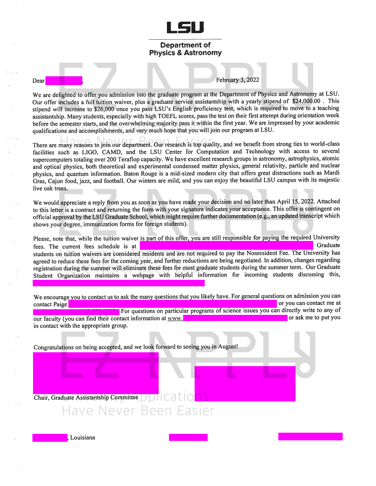 اخذ پذیرش فول فاند توسط تیم «ایزی اپلای» در مقطع دکترا «فیزیک» از دانشگاه «Louisiana State University» آمریکا برای ترم پاییز 2022
