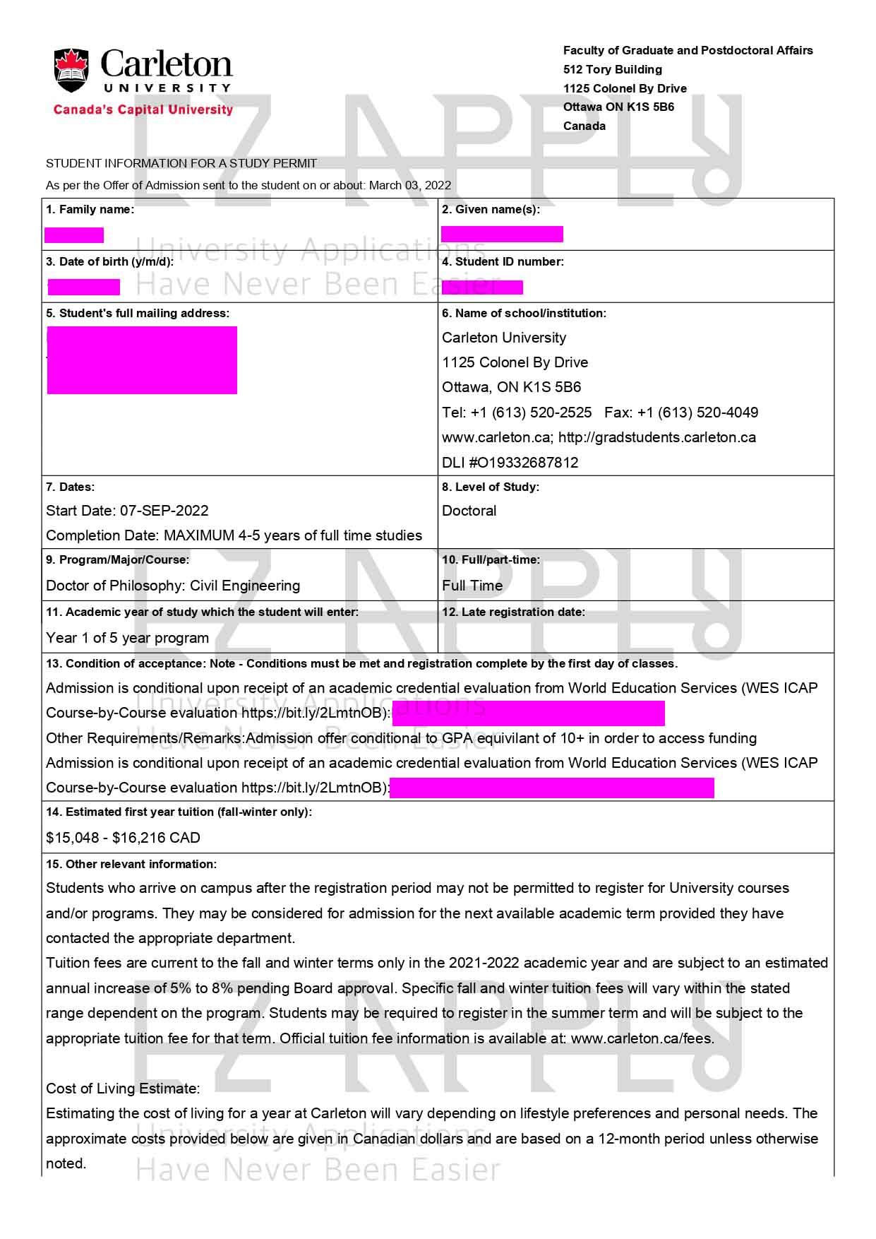 - اخذ پذیرش فول فاند توسط تیم «ایزی اپلای» در مقطع دکتری در رشته «مهندسی عمران» از «Carleton» در کانادا برای ترم پاییز 2022