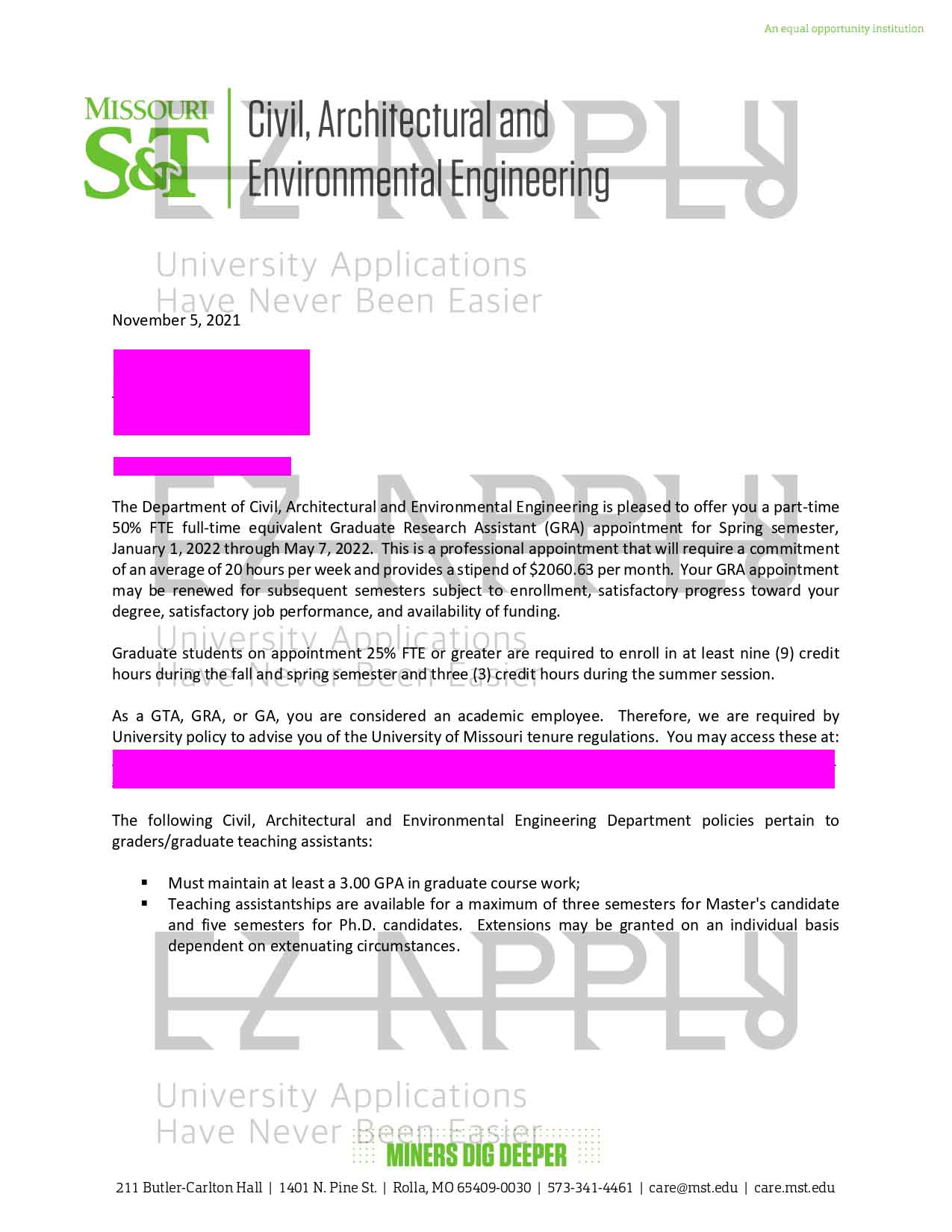 - اخذ پذیرش فول فاند توسط تیم «ایزی اپلای» در مقطع دکتری در رشته «مهندسی عمران» از «Missouri S&T» در آمریکا برای ترم پاییز 2022
