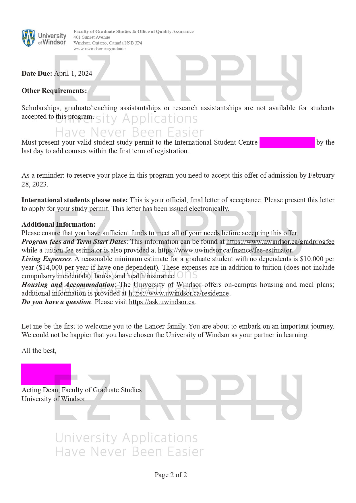 اخذ پذیرش توسط تیم «ایزی اپلای» در مقطع «کارشناسی ارشد» در رشته ی «مدیریت-منابع انسانی» از دانشگاه «University of Windsor» در کانادا برای ترم زمستان 2024