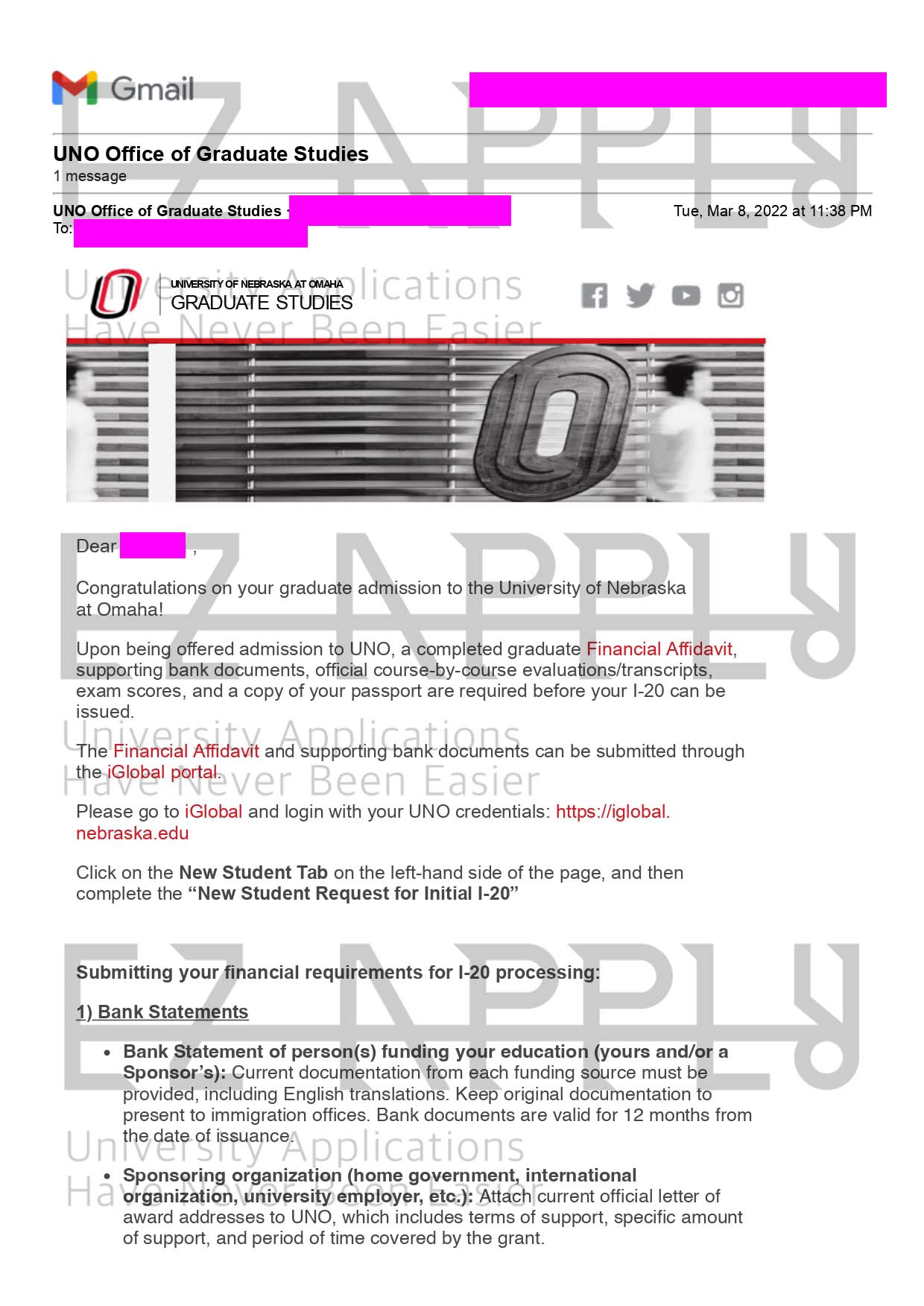 اخذ پذیرش فول فاند توسط تیم «ایزی اپلای» در مقطع دکتری در رشته «Biomechanics» از «The University of Nebraska» در آمریکا برای پاییز 2022