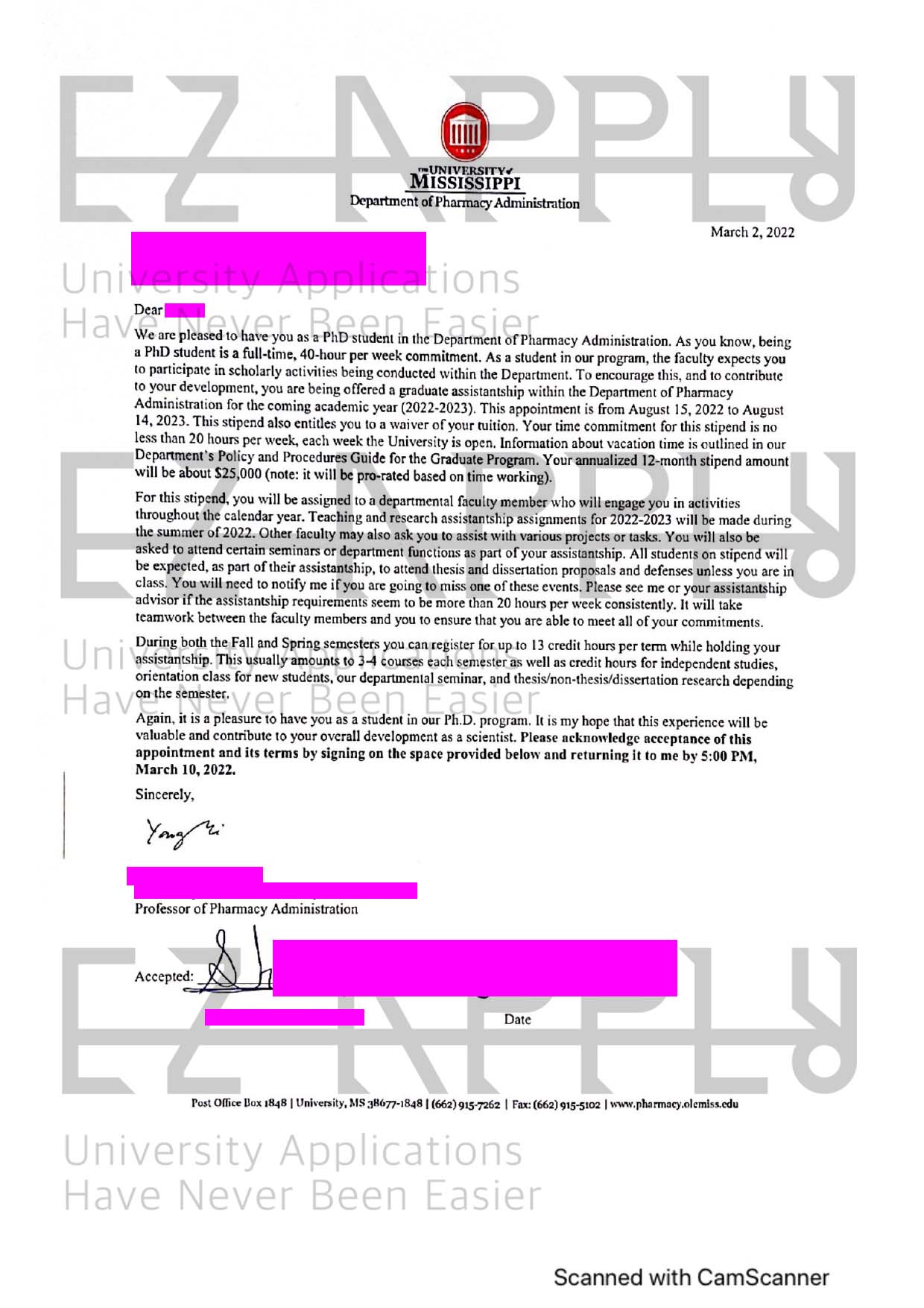 اخذ پذیرش فول فاند توسط تیم «ایزی اپلای» در مقطع دکتری در رشته «داروسازی» از «The University of Mississippi » در آمريكا براي پاییز 2022