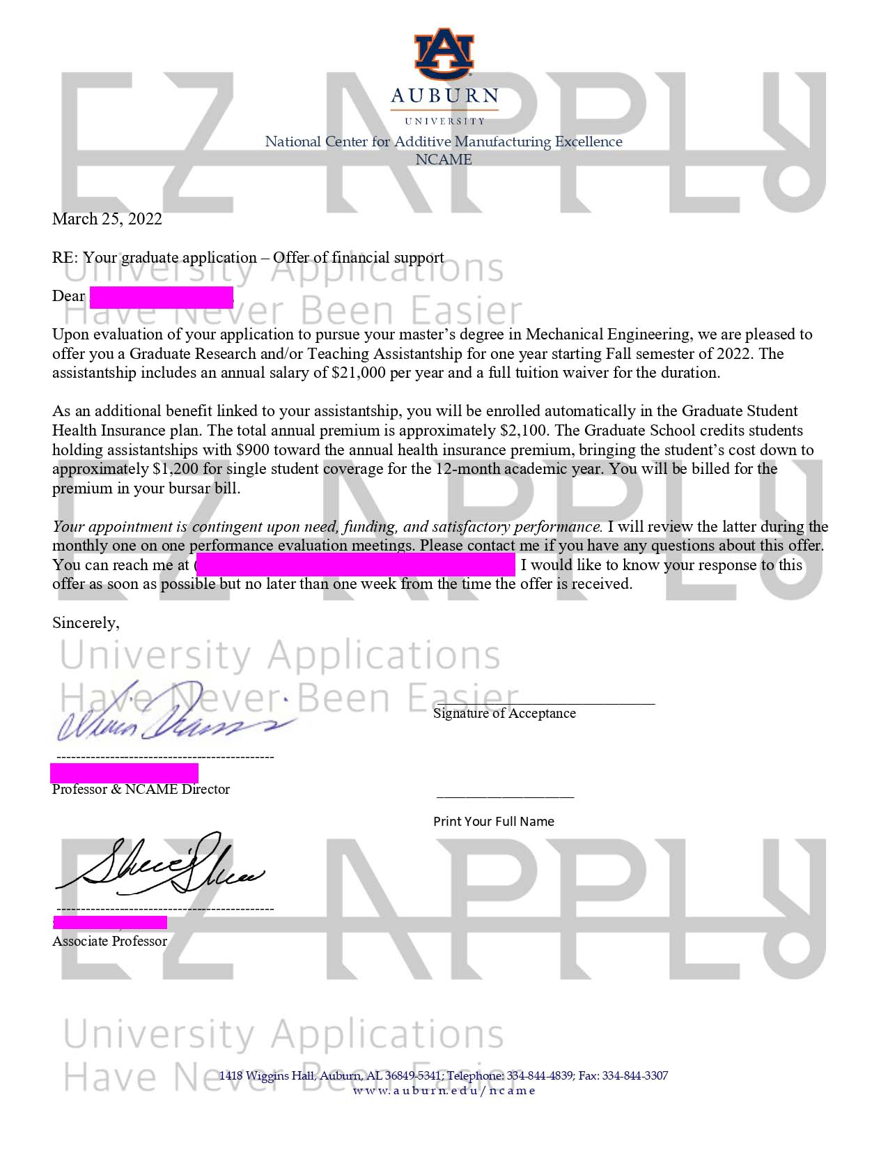 اخذ پذیرش فول فاند توسط تیم «ایزی اپلای» در مقطع دکتری در رشته «مهندسی مکانیک» از دانشگاه «Auburn University»