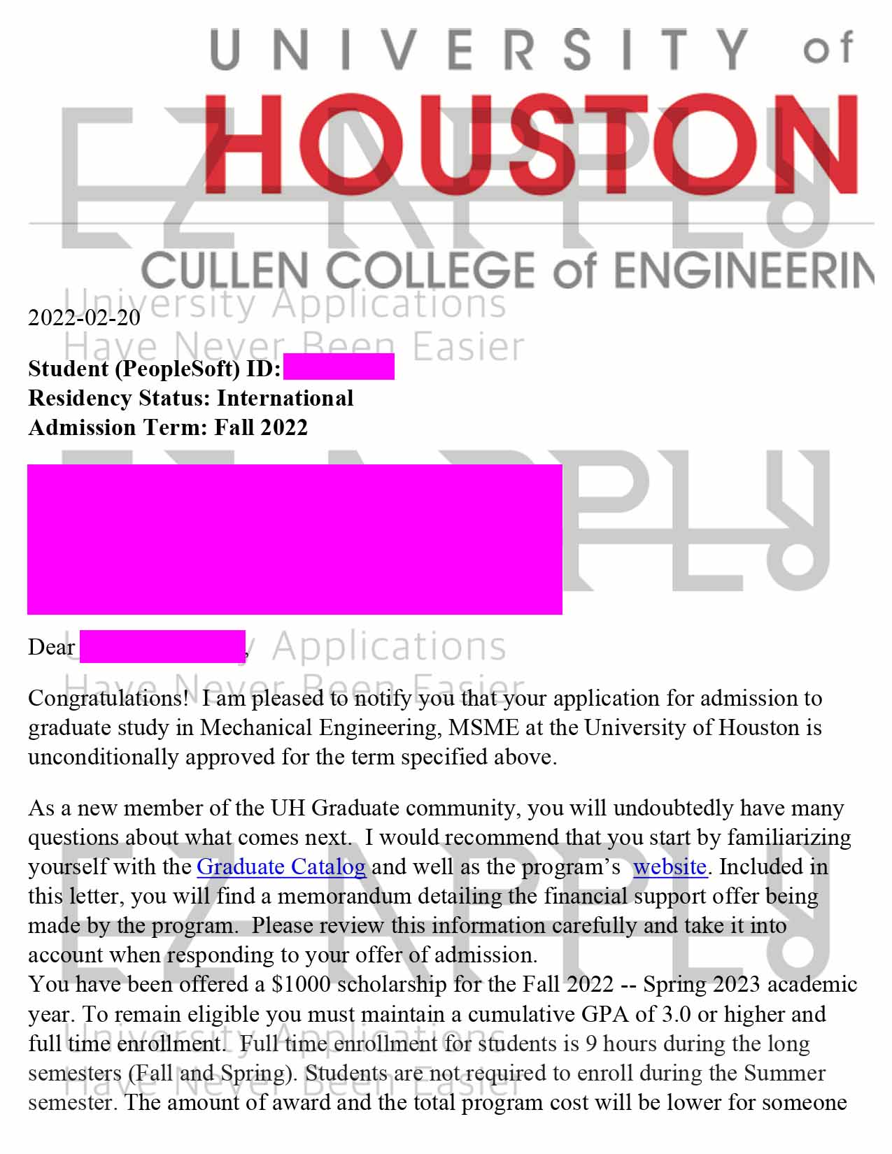 اخذ پذیرش با فاند توسط تیم «ایزی اپلای» در مقطع کارشناسی ارشد در رشته «مهندسی مکانیک» از دانشگاه «University of Houston»