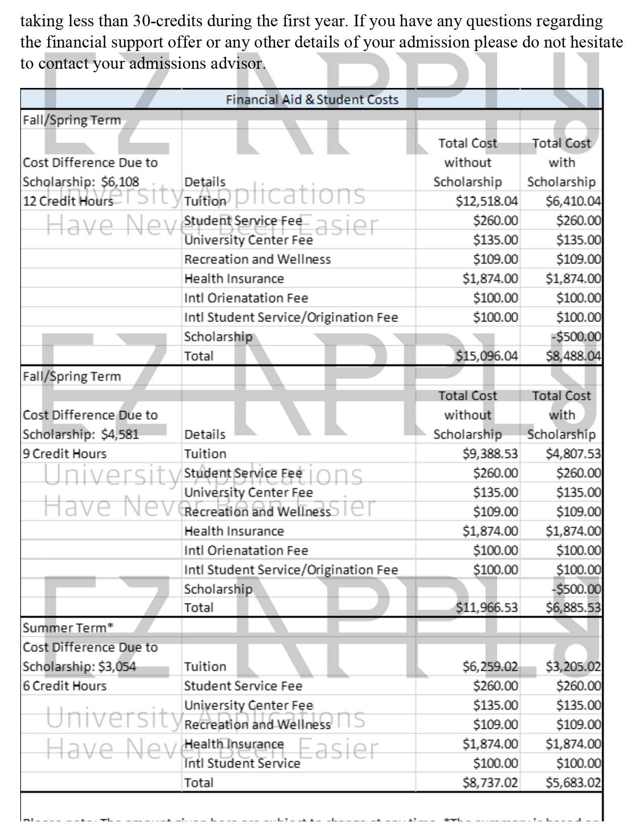 - مقدار فاند دریافتی متقاضی بابت شهریه یک سال: 7,635 دلار