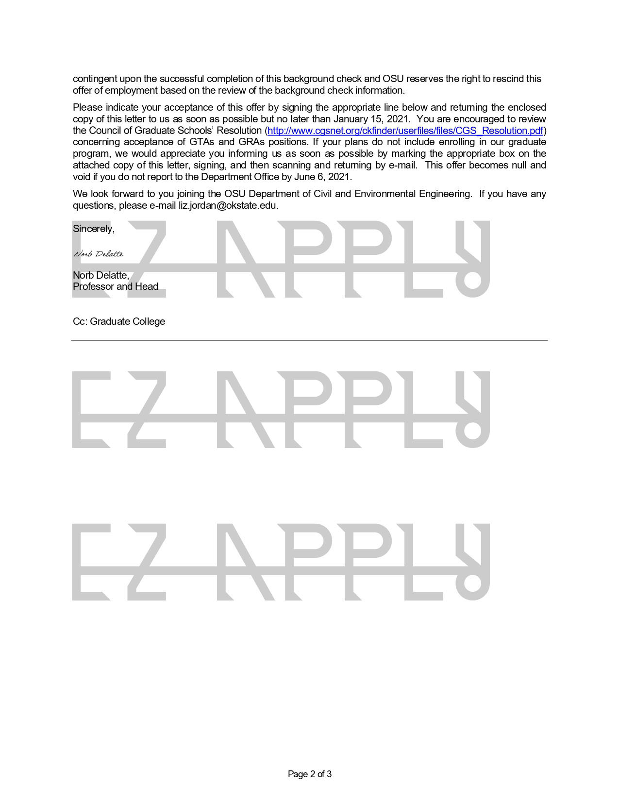 اخذ پذیرش توسط تیم «ایزی اپلای» در مقطع دکتری «Civil and Environmental Engineering» از دانشگاه «Oklahoma State University» آمریکا