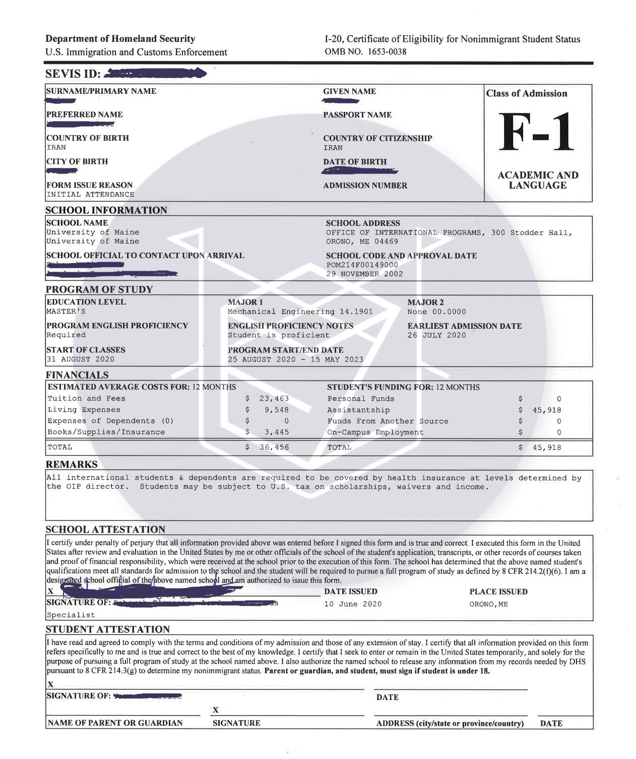 اخذ پذیرش توسط تیم «ایزی اپلای» در مقطع کارشناسی ارشد مهندسی «مکانیک» از دانشگاه «Maine» آمریکا