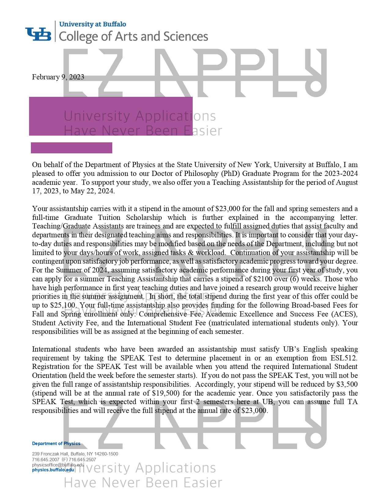 • پذیرش اخذ شده توسط تیم ایزی اپلای در مقطع «دکتری» در رشته «فیزیک» از «University at Buffalo» در آمریکا برای پاییز 2023