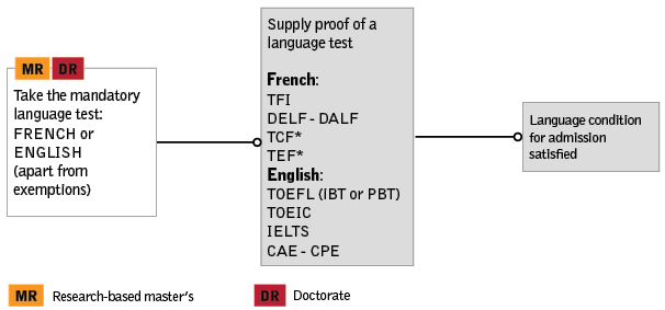 7) تدریس کلیه دروس در کلیه مقاطع به زبان فرانسه خواهد بود و حضور در این کلاسها مستلزم برخورداری از دانش بالا در خصوص زبان فرانسه از سوی دانشجویان است.آزمون های قابل قبول دانشگاه مطابق عکس زیر می باشد.